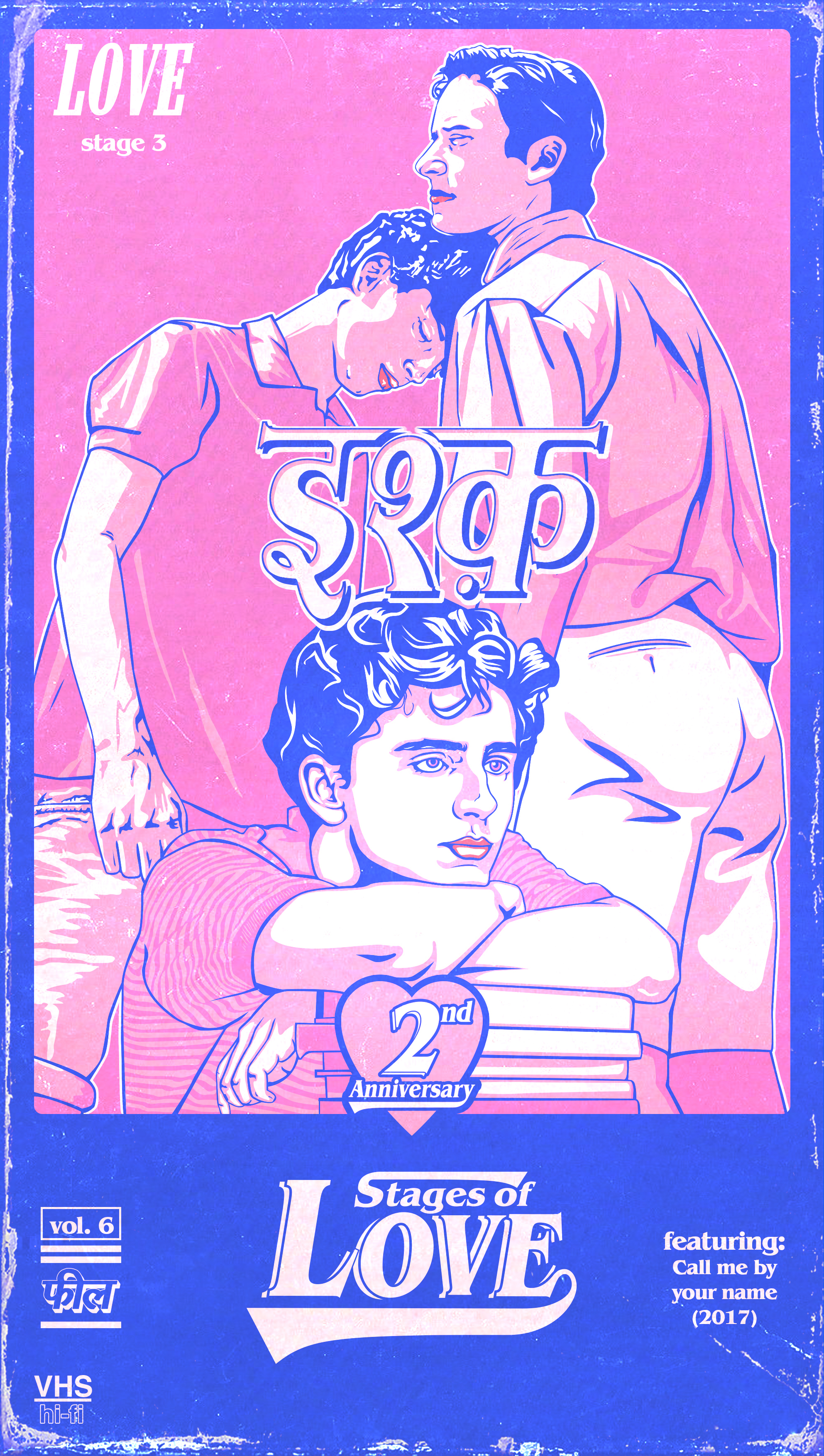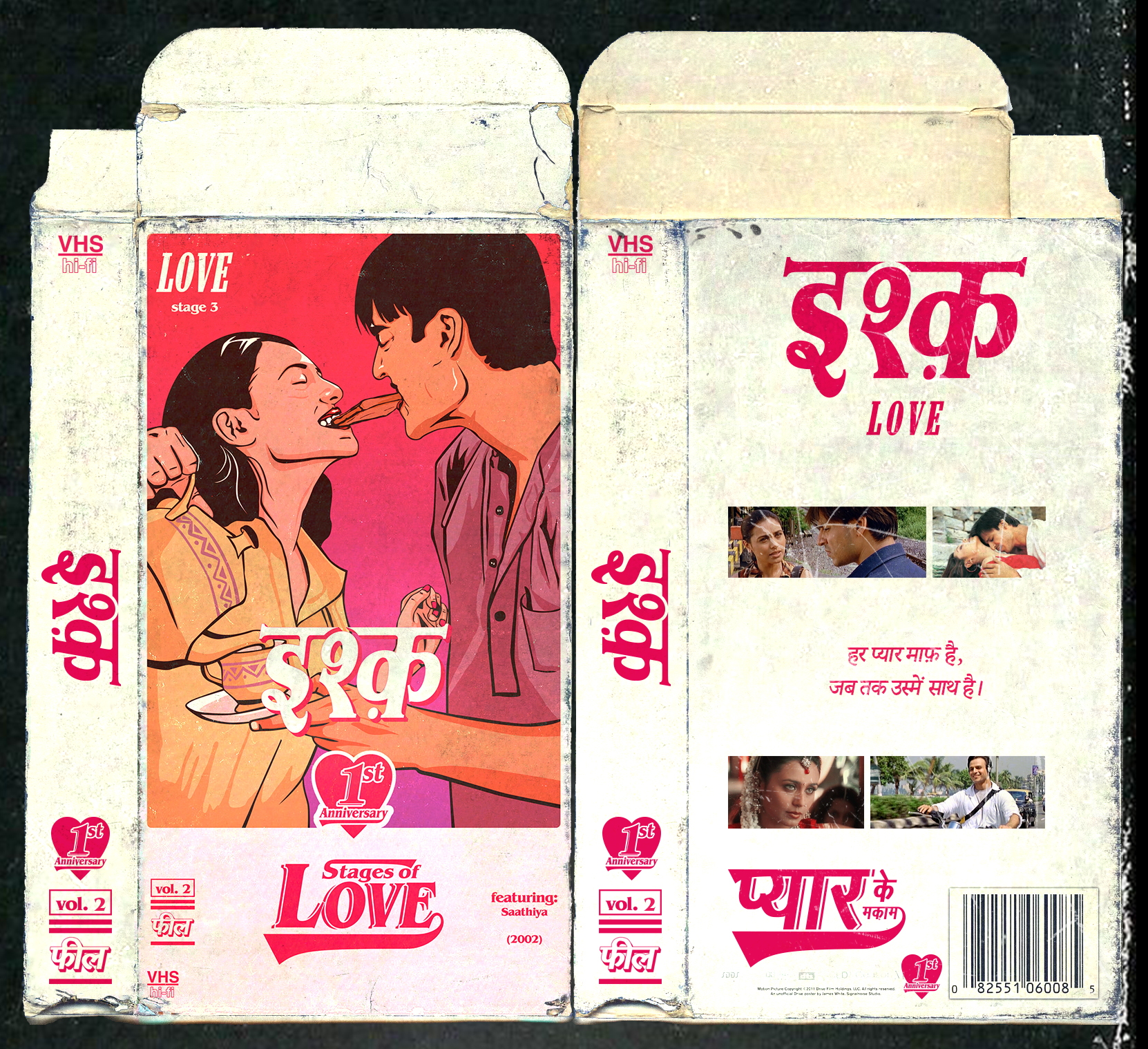 A series of VHS tape covers have been illustrated showcasing the seven stages of love, deriving from respective films from Hindi Film Industry, which depict that particular stage in the most beautiful and iconic manner. VHS tapes are chosen to facilitate nostalgia and bring back the times away from the comforts of modern thinking and social media. The times where feelings were a pure idea and motivation for people to put in efforts and take a stand for love.